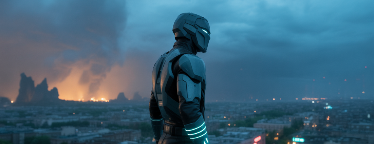 Darius was a former military engineer who discovered an alien artifact during a classified mission. After reverse-engineering it into a powerful exosuit, he vowed to protect his city from threats beyond conventional forces. A near-future, high-tech version of Atlanta called Nova Atlanta, a city on the brink of collapse due to rising tech-crime and a shadowy organization known only as The Shroud.