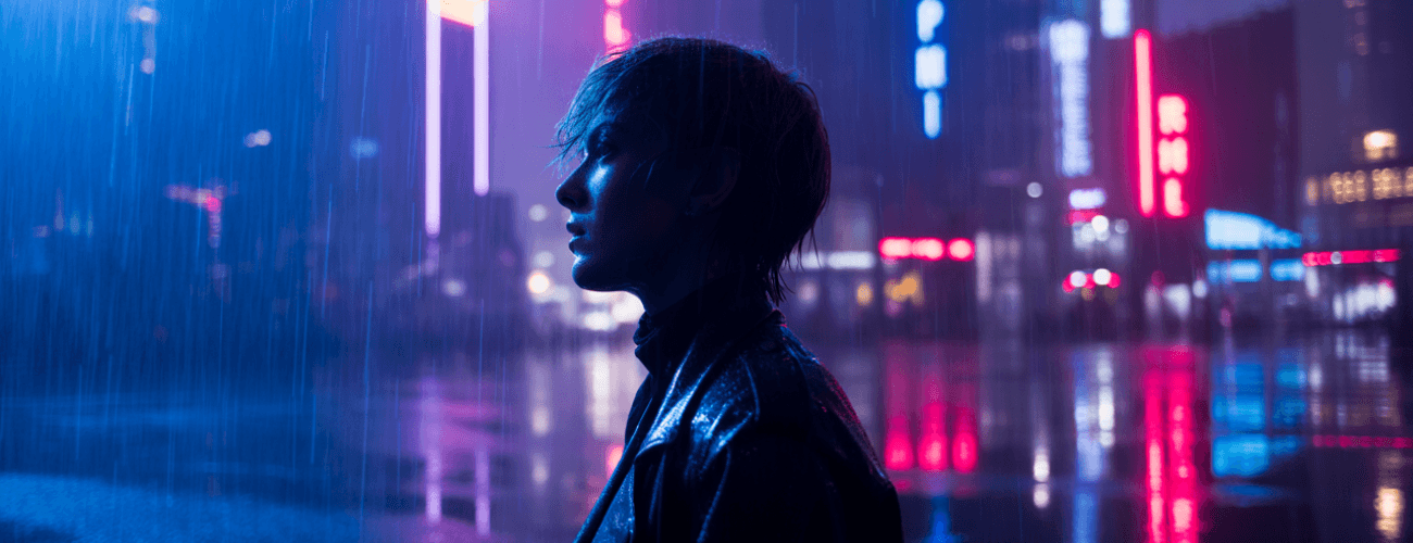 The city never slept, but its dreams were fragile. Neon lights flickered against rain-slick streets, casting fractured reflections on cracked glass and rusted steel. Above, drones hummed in patterned swarms, scanning for signs of rebellion or dissent. Every corner hid a secret; every shadow whispered of forgotten lives. Kaia’s boots echoed through narrow alleyways, her breath misting in the cold night air. A hood pulled low over her eyes, she moved with practiced stealth — a ghost in the endless cityscape.